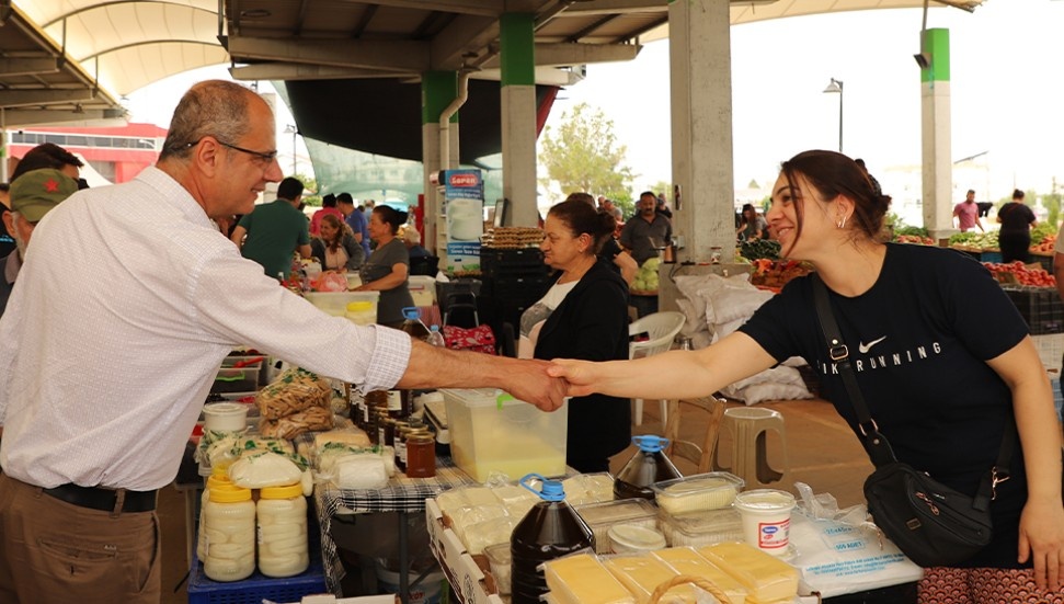 ı Sami Özuslu, Merkez Lefkoşa’daki açık pazarı ziyaret ederek yurttaşla buluştu.