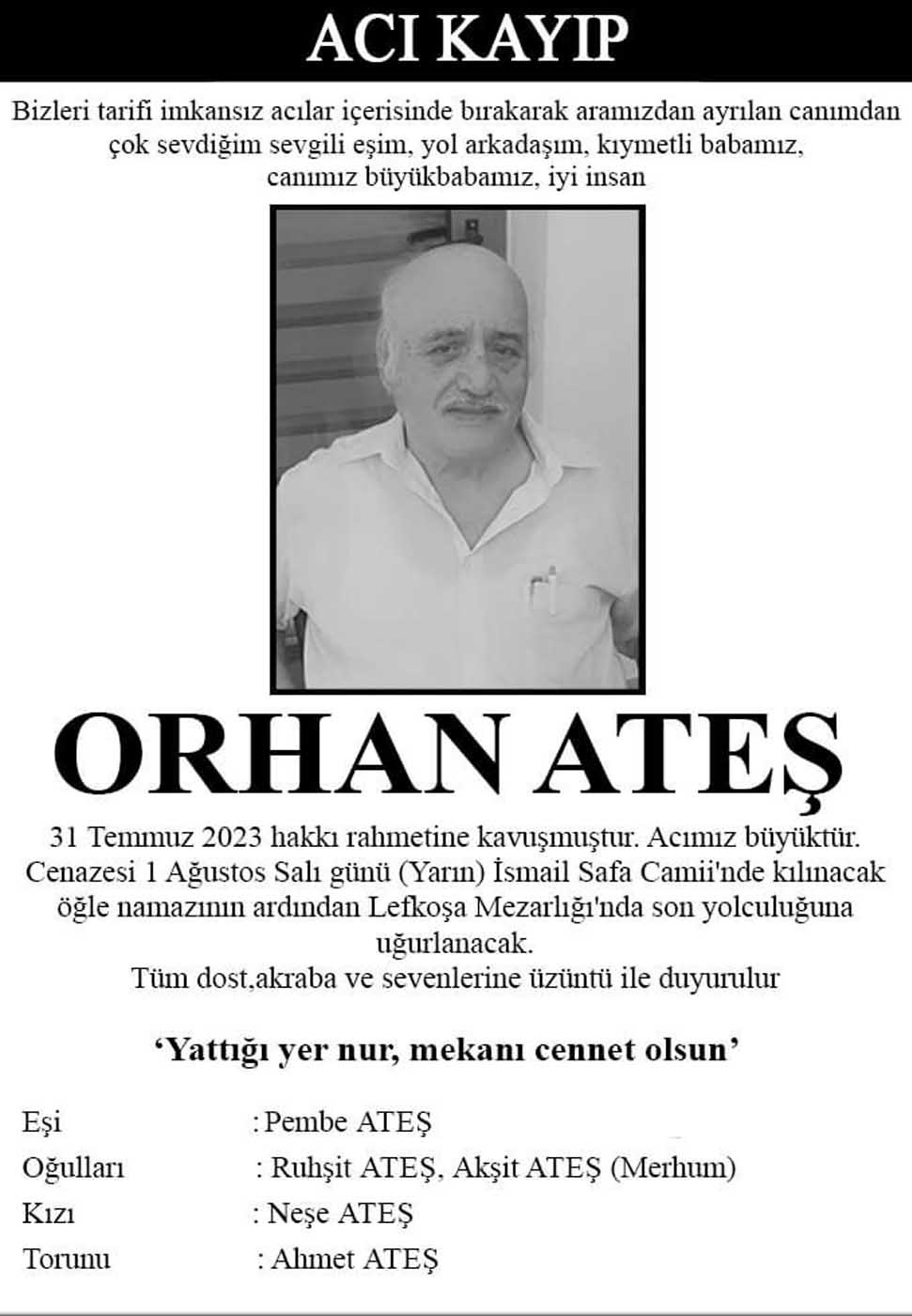 Lefkoşa sakini Orhan Ateş yaşamını yitirdi.