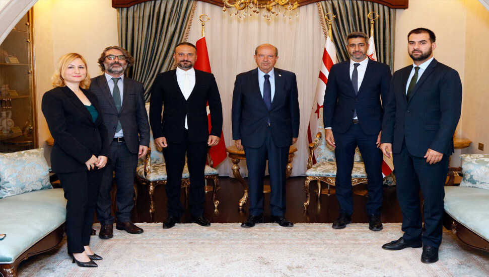 Cumhurbaşkanı Ersin Tatar, Günsel Yönetim Kurulu Başkanı Prof. Dr. İrfan Suat Günsel, Türkiye Cumhuriyeti Sanayi ve Teknoloji Bakanlığı, Milli Teknolojiler Genel Müdürlüğü, Dijital Teknolojiler Dairesi Başkanı Emre Dabak ve Sanayi ve Teknoloji Uzmanı Ertuğrul Yeşil’i kabul etti.