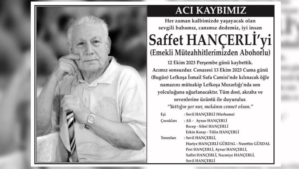 Lefkoşa sakinlerinden Saffet Hançerli yaşamını yitirdi.
