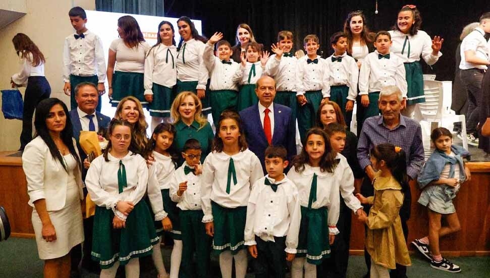 Cumhurbaşkanlığı’ndan yapılan açıklamaya göre, Cumhurbaşkanı Ersin Tatar’ın eşi Sibel Tatar öncülüğünde, fırsat eşitliği yaratmak amacıyla “özel” çocuklardan kurulan Cumhurbaşkanlığı Fidan Çocuk Korosu ve Orkestrası, KKTC Cumhurbaşkanlığı Senfoni Orkestrası ve Türk Maarif Koleji Ortaokul Korosu ile birlikte sahneye çıktı.