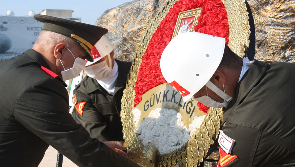 Protokol sırasına göre Gazimağusa Kaymakamı Kemal Serpal, Kıbrıs Türk Barış Kuvvetleri Komutanlığı adına Merkezi Komutanı Topçu Albay Oğuzhan Kırılmaz, Güvenlik Kuvvetleri Komutanlığı adına 4. Piyade Alay Komutanı Piyade Albay Kadir Bayraklı, siyasi parti, üniversite, dernek, kurum ve kuruluş temsilcileri tarafından anıta çelenk konuldu.
