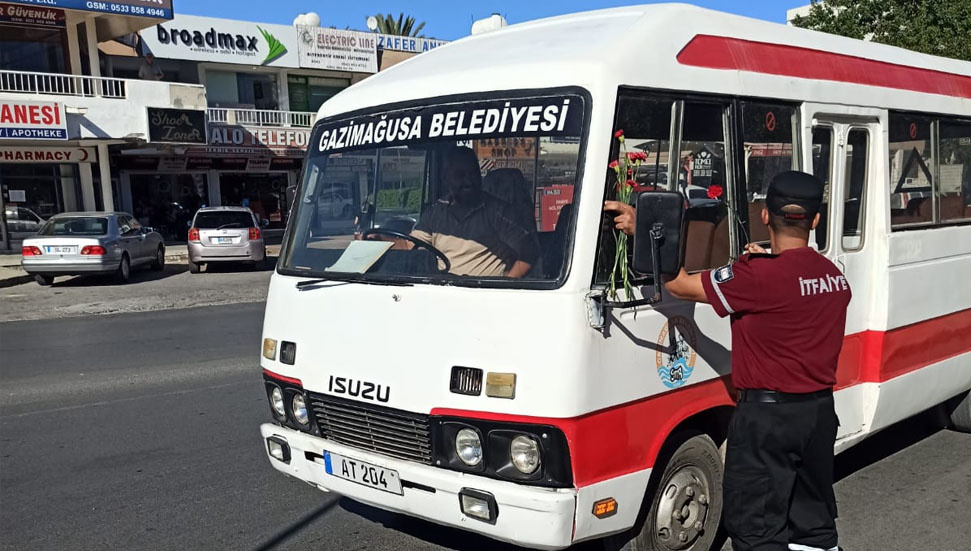 İtfaiye Haftası etkinlikleri kapsamında, Mağusa İtfaiye Şubesi çalışanları, Sulu Çember’de yoldan geçen vatandaşlara ve araç sürücülerine karanfil dağıttı.