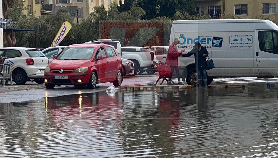 Şiddetli yağmurlar sonrasında Salamis Yolu olarak bilinen bölgede ve Önder Alışveriş Merkezi’nin önünde yoğun su birikintileri oluştu.
