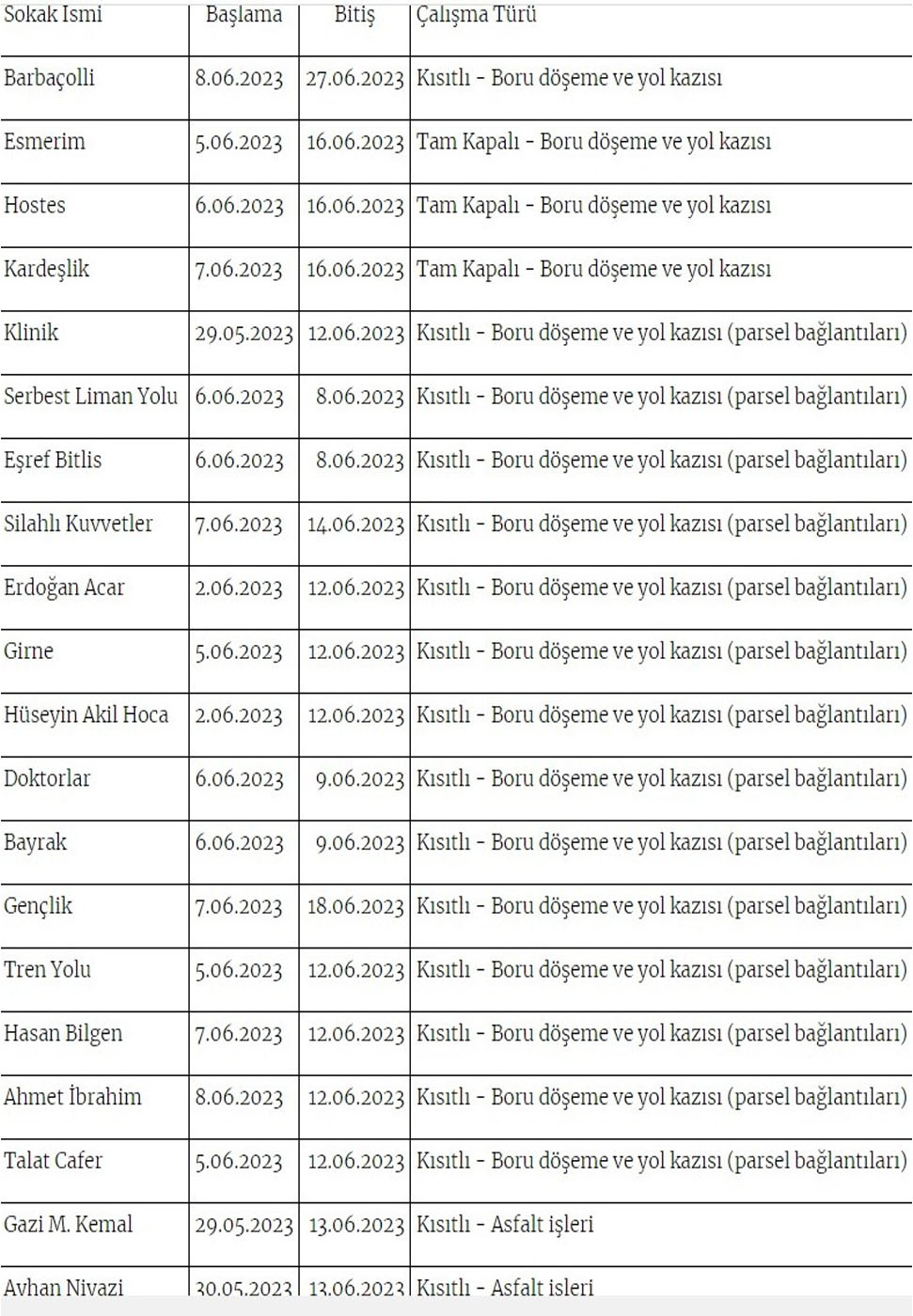 Yeni başlanacak sokaklar için ise çalışma takvimi şu şekilde: