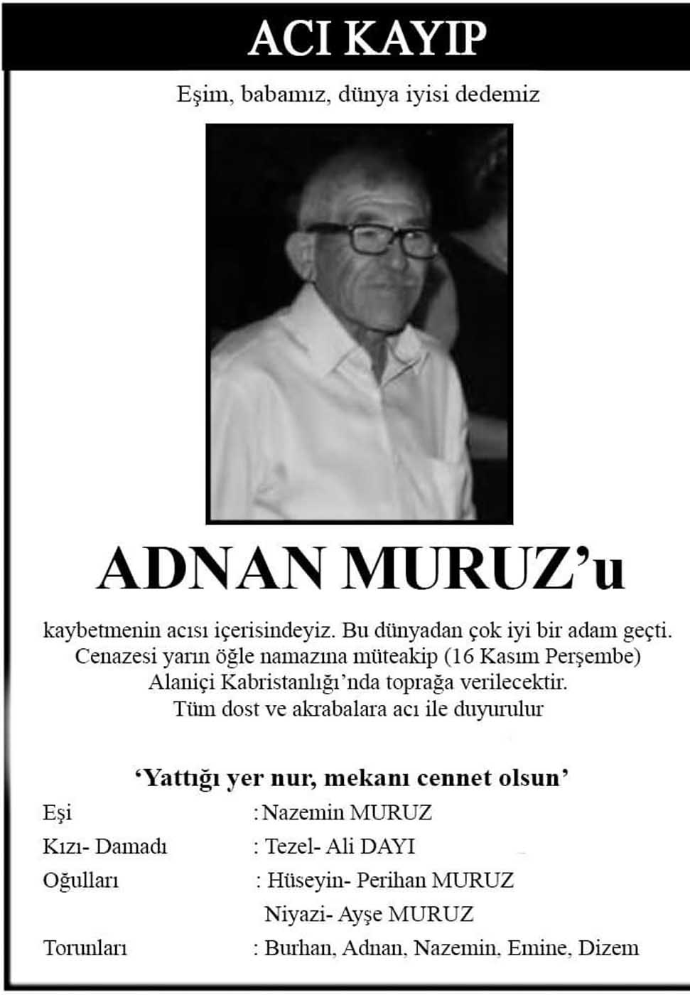 Alaniçi sakinlerinden Adnan Muruz yaşamını yitirdi.
