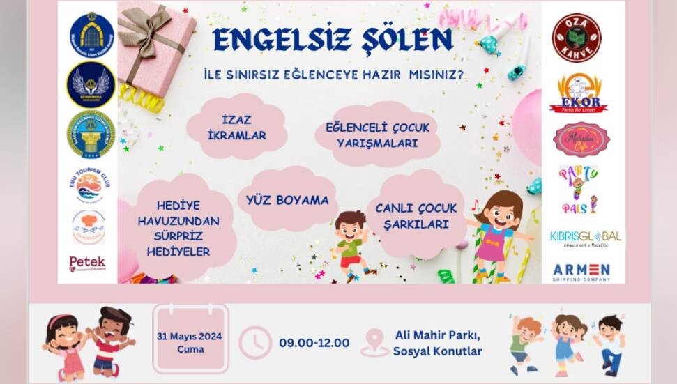 Doğu Akdeniz Üniversitesi Özel Eğitim Öğretmenliği Bölümü öğrencilerinin düzenleyeceği, Mağusa Ravelin Lions Kulübü ana sponsorluğundaki “Engelsiz Şölen”, 31 Mayıs Cuma günü Gazimağusa Ali Mahir Çocuk Parkı’nda yapılacak.