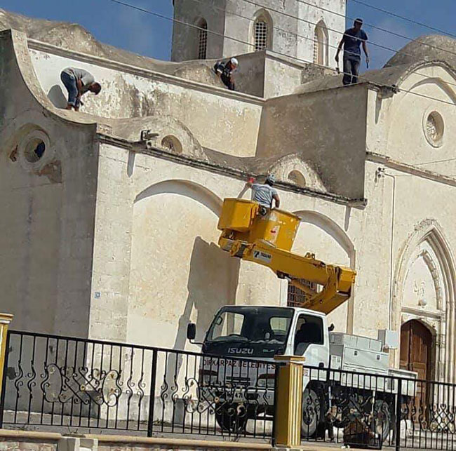 Dipkarpaz'da köy meydanında bulunan ve 43 yıldır Rum propagandasının "Aman Türkler yapmasın", Türk propagandasının da "Rumlara yaptırmayız" diyerek bakımını yapmadığı Ayios Synesios Kilisesi'ne ilk kez bakım yapılıyor...