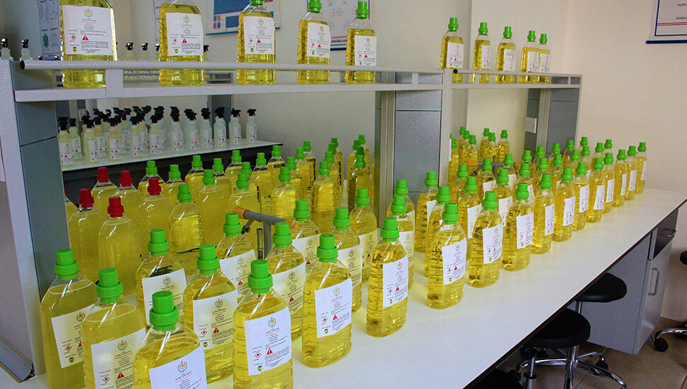 Namık Kemal Lisesi öğretmenleri kolonya, çok amaçlı yüzey temizleyici ve dezenfektanlı yüzey temizleyici üretti.
