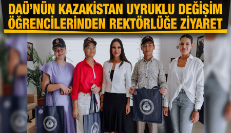 Öğrenci değişim programı kapsamında, DAÜ’ye öğrenim görmeye gelen Kazakistan uyruklu öğrenciler, 28 Eylül 2022 Çarşamba günü, saat 11.00’de, DAÜ Sosyal ve Kültürel İşlerden Sorumlu Rektör Yardımcısı Prof. Dr. Deniz İşçioğlu’nu makamında ziyaret etti.