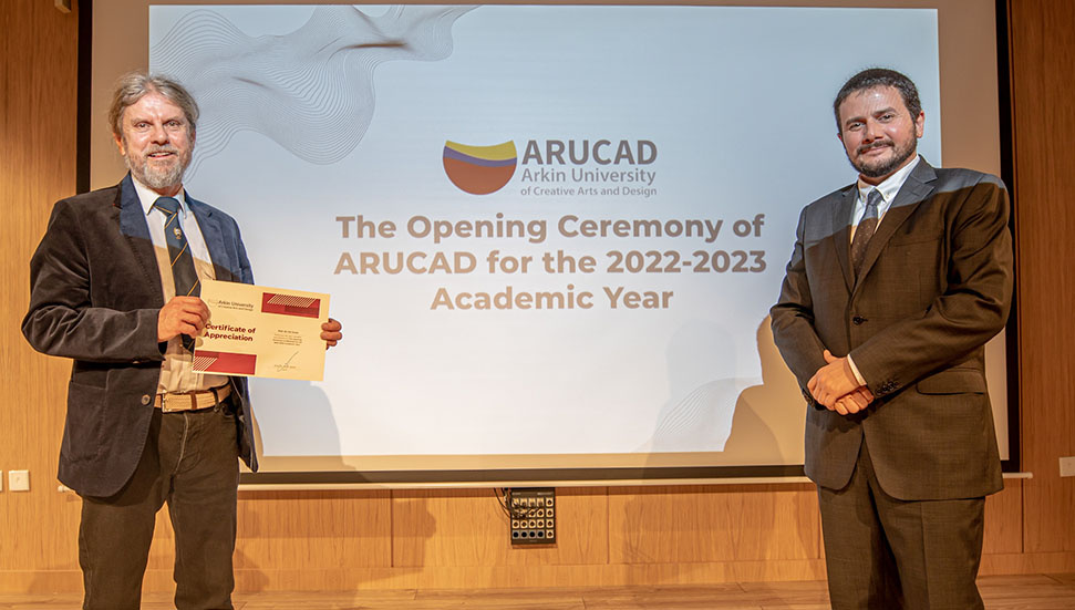 ARUCAD Mütevelli Heyeti Başkanı Yrd. Doç. Dr. Sinan Arkın’ın Prof. Dr. Vic Grout’a sertifika takdim etmesinin ardından tören son buldu.