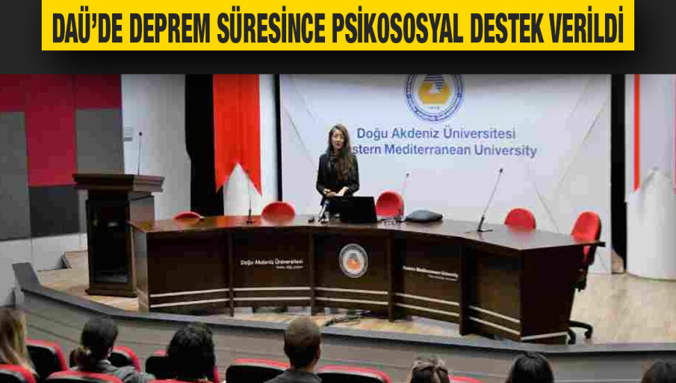 Doğu Akdeniz Üniversitesi’nde geçtiğimiz günlerde Psikolojik Danışman ve öğretmenlere yönelik gerçekleştirilen Psikolojik İlk Yardım çalışmalarının ardından 23 Şubat 2023 Perşembe günü, saat 11.00’de Mustafa Afşin Ersoy Salonu’nda DAÜ akademik ve yönetsel personele yönelik deprem sürecinde psikososyal destek ve öğrencilerle iletişim konusunda eğitim verildi.