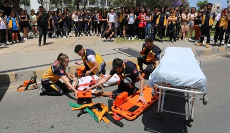 İlk ve Acil Yardım Bölümü öğrencileri, üniversite eğitim hayatları boyunca edindikleri bilgi ve tecrübelerini, kampüs alanı içinde daha önceden belirlenmiş yerlerde ve uygun senaryolar kapsamında diğer üniversite öğrencilerine paylaşma fırsatı buldular.
