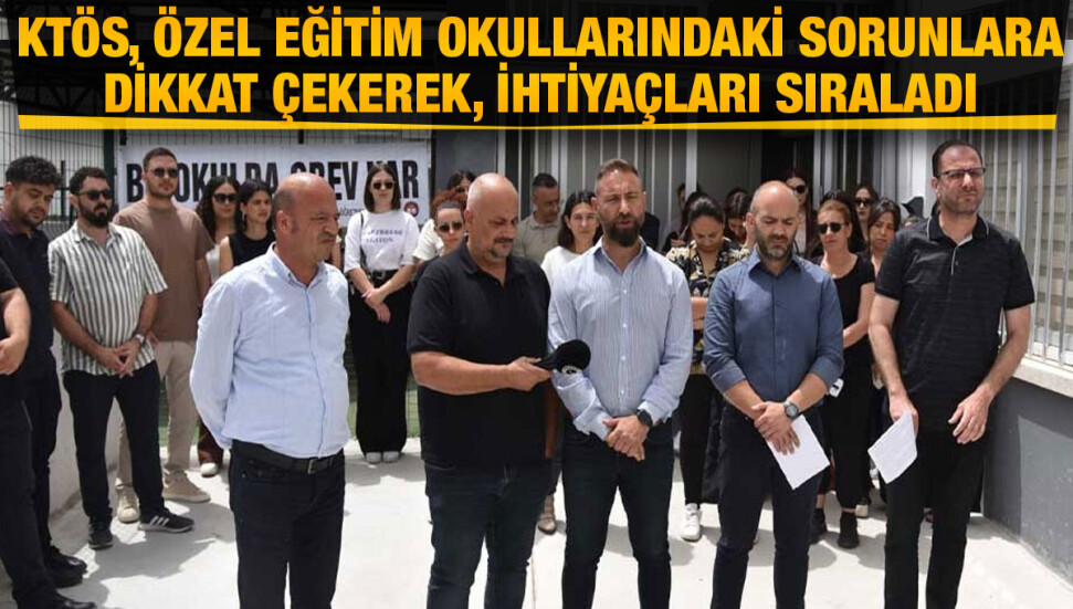 Kıbrıs Türk Öğretmenler Sendikası (KTÖS), "gerçek eğitim gündemlerimizden biri, özel eğitim okullarının güncel durumu ve bu okullarda yaşanan tam gün eğitim fiyaskosudur” diyerek, özel eğitimde yaşanan sorunları ve ihtiyaçları sıraladı.