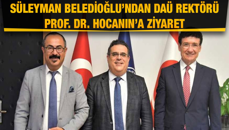 Doğu Akdeniz Üniversitesi (DAÜ) Türkiye Eğitim Danışmanı Süleyman Beledioğlu ile İletişim Uzmanı, TV Program Yapımcısı ve Sunucusu İsmail Yolcu, DAÜ Rektörü Prof. Dr. Aykut Hocanın’a nezaket ziyareti gerçekleştirdi. Söz konusu ziyaret, 15 Eylül 2023 Cuma günü, saat 16:00’da, DAÜ Rektörü Prof. Dr. Hocanın’ın makamında gerçekleşti.