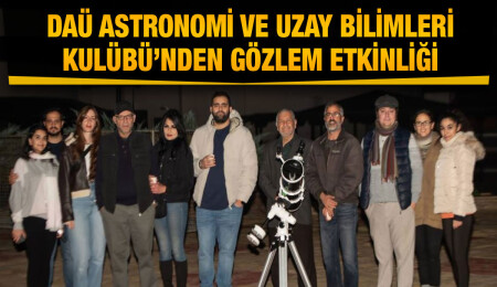 DAÜ Fen ve Edebiyat Fakültesi, Fizik Bölümü Başkanı Prof. Dr. İzzet Sakallı, Fizik Bölümü Öğretim Üyesi ve DAÜ Astronomi ve Uzay Bilimleri Kulübü Danışmanı Yrd. Doç. Dr. Huriye Gürsel Mangut, Fizik Bölümü Öğretim Görevlisi Dr. Mert Mangut, Araştırma görevlisi Erfan Keshavarz, kulüp üyeleri ve astronomi ile ilgilenen 50’ye yakın DAÜ’lü öğrencinin katıldığı gözlem etkinliğinde, bölüm envanterinde bulunan teleskoplarla gökyüzü incelendi.