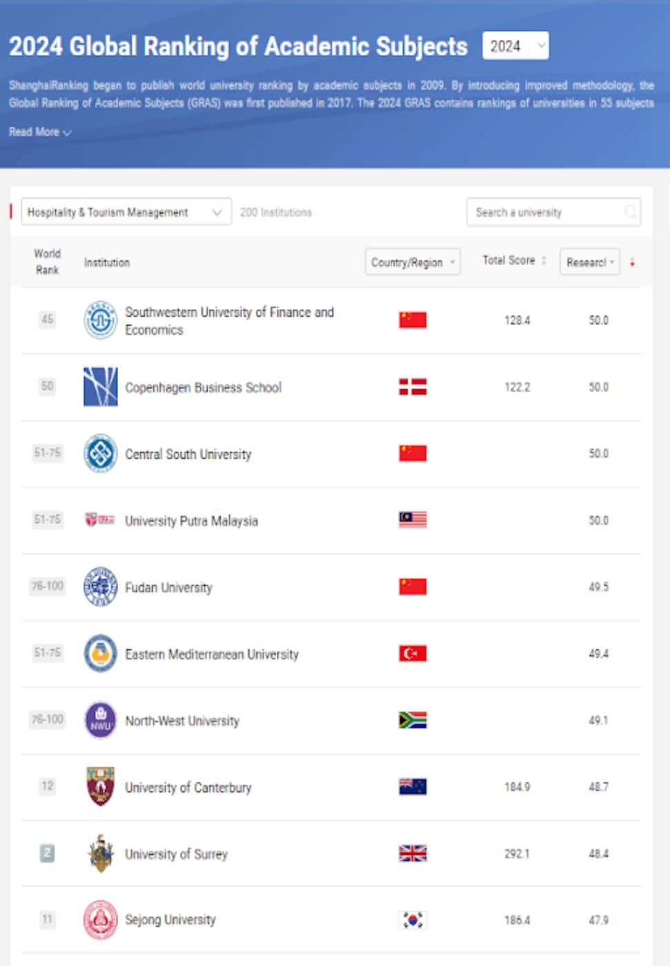 Shanghai Ranking ilk kez 2009 yılında akademik konulara göre dünya üniversite sıralamalarını yayımlamaya başladı ve geliştirilmiş metodolojinin uygulanmasının ardından, Küresel Akademik Alan Sıralaması (GRAS) ilk olarak 2017 yılında yayımlandı. 2024 GRAS; Doğa Bilimleri, Mühendislik, Fen Bilimleri, Tıp Bilimleri ve Sosyal Bilimler genelinde 55 konuda üniversitelerin sıralamasını içeriyor. 96 ülke ve bölgedeki 5,000 üniversiteden 1,900’den fazlası söz konusu sıralamada listeleniyor. GRAS sıralamaları, “Dünya Çapında Öğretim Üyeleri”, “Dünya Çapında Akademik Çalışma”, “Yüksek Kalitede Araştırma”, “Araştırma Etkisi” ve “Uluslararası İş Birliği” gibi 5 ana değerlendirme kategorisini kapsayan ilgili konularda dünya üniversitelerinin performansını ölçmek için objektif akademik göstergeler ve üçüncü taraf verilerini kullanıyor.