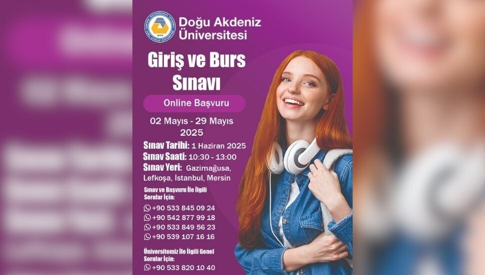 Doğu Akdeniz Üniversitesi’nin, 2025–2026 Akademik Yılı Giriş ve Burs Sınavı başvuruları cuma günü başladı.