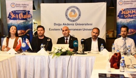 Doğu Akdeniz Üniversitesi (DAÜ), Uluslararası Yaz Okulu kapsamında 7 Mayıs 2025 Çarşamba günü, saat 15.00’te bir basın toplantısı düzenledi. Toplantıda, yaz okulunun içeriği, eğitim programları, sosyal ve kültürel etkinlikler ile özel kamp uygulamaları hakkında bilgi verildi. Noyanlar Şirketler Grubu’nun ana sponsorluğunda gerçekleştirilecek olan Uluslararası Yaz Okulu’nun, bu yıl çok daha kapsamlı ve zengin bir içerikle hayata geçirileceği vurgulandı. Söz konusu toplantıya, üniversite yetkilileri, basın mensupları ve ilgili birim temsilcileri katıldı.