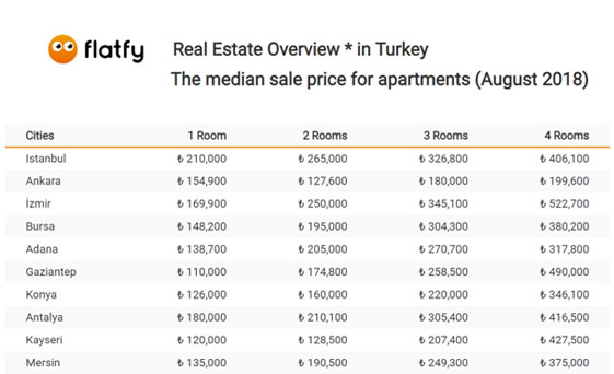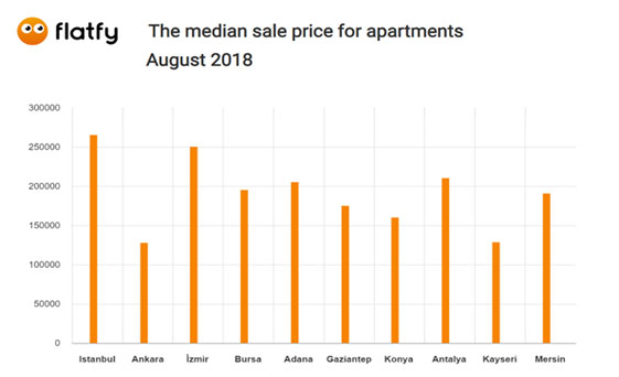 Türkiye'de 2016 yılı itibari ile başlayan emlak durgunluğu 2017'nin sonundan itibaren emlak fiyatlarını ciddi oranda etkiledi. 2018 Flatfy raporlarına ay ay bakıldığında bu durumu ayrıntılı olarak görmek mümkün. Fiyat artışı beklenen illerde Türk parasında olan değer kaybına rağmen herhangi bir artış görülmedi. İstanbul Emlak fiyatları 300 bin baremine sene içerisinde yaptığı ufak artışlarla yaklaşmaya devam ediyor. Ağustos ayında yine çok küçük bir artış gösteren fiyatlar İzmir'de ise geriye dönük olarak işlemiş durumda. İzmir ev fiyatları tam olarak 250 bin civarında ortalama ile sunuluyor. Bu fiyatlar 250 binin aşağısına şu anki piyasada kısa vadede düşse bile artış gelecek ay veya yıllarda devam edebilir. Ankara, Kayseri ve Konya ise Türkiye geneline göre daha ucuz konut imkanları sunuyor. Bu şehirde 130 bin ile 170 bin arasına birçok farklı eve sahip olunabilir. Adana, Bursa, Antalya, Mersin ise yaz ayları olmasına rağmen Ağustos ayında da önemli artışlar göstermedi.