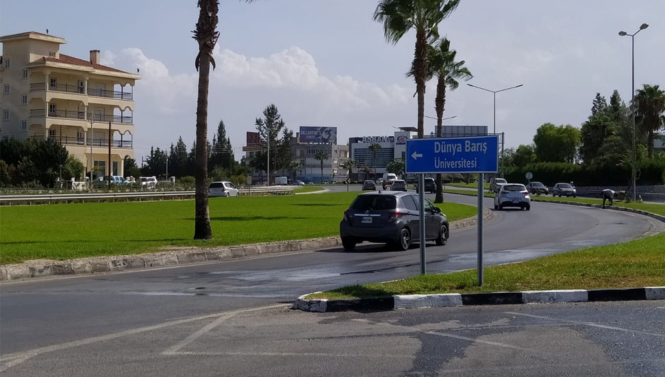 Gönyeli Çemberi’ni kullanan sürücüler bir sabah ansızın Dünya Barış Üniversitesi yazılı yön levhaları ile karşılaştı… Görüş açısını kısıtlayan levhalar, vatandaşların tepkisine neden oldu.