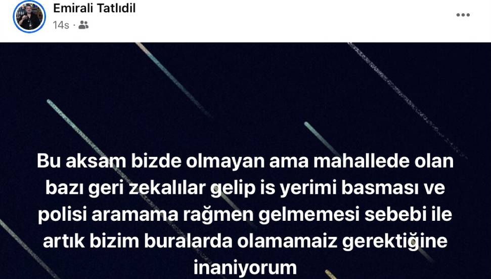 Meyhane sahibi Emirali Tatlıdil, konuyla ilgili sosyal medya hesabından bir paylaşım yaptı.