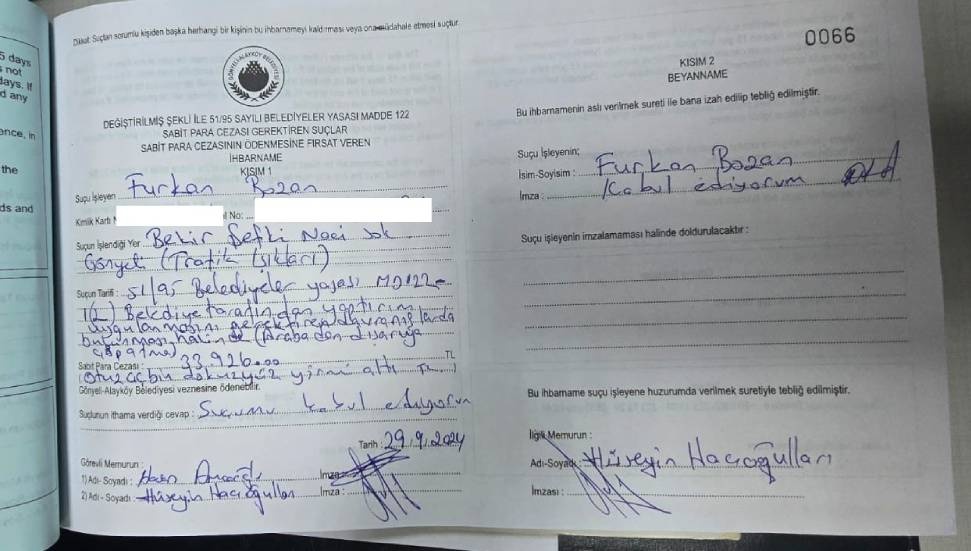 Gönyeli'de Bozan 47 plakalı aracın sürücüsü Furkan Bozan, trafikte çekirdek çitleyip kabuklarını yola atmasının ardından 34 bin Türk Lirası ceza aldı.